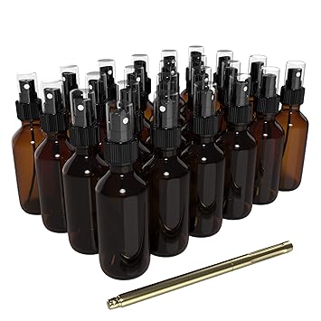 1 oz black-colored amber glass boston round bottle with 20-400 neck finish. Characteristic of the boston round are its rounded shoulders and rounded base. Glass Spray Bottle 16 oz 2 Pack Amber 500 ML Boston Bottles 4 Labels 1 Funnel by PrettyCare Fine Mist Sprayers Water Refillable Dispenser for Perfume Plants Essential Oils Aromatherapy and Natural Cleaning Products.